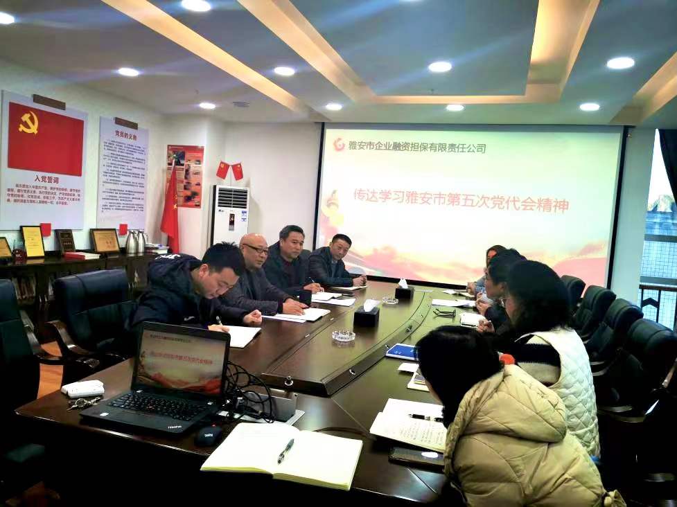 12月24日,市擔(dān)保公司召開支委(擴(kuò)大)會(huì),專題傳達(dá)學(xué)習(xí)雅安市第五次黨代會(huì)精神,并就貫徹落實(shí)情況進(jìn)行安排部署。市擔(dān)保公司黨支部書記、董事長(zhǎng)尹福健主持會(huì)議。